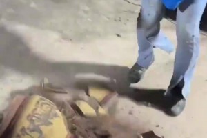 男子路上遇见一只公鸡,整个身体都被淤泥压住了